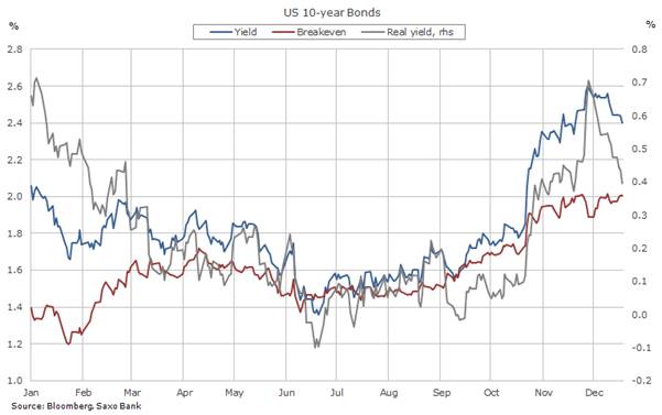 黄金价格在元旦节后大幅上涨,国际现货金价自12月15日以来上涨超过50美元。期间美国10年期国债收益率下跌,实际收益率从10个月高点快速回落。同时美元在美联储会议后显示出上升动能减弱的迹象,并最终出现回调,这些因素为金价提供了支持。如果金价回升到1173美元/盎司上方,有可能引发更多空头回补,继而进一步挑战1205附近的关键阻力。