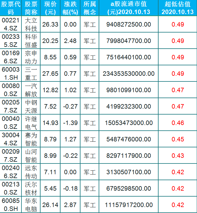 A股市场:0.5超低估值,23只被市场严重低估值的军工股(名单)